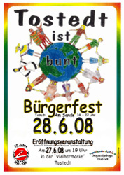 Am 27. 06. 2008 fand unter dem Motto "Zivilcourage gestern und heute: 1940-2008" die Auftaktveranstaltung zum Bürgerfest statt. Im Saal der Tostedter Vielharmonie war die Ausstellung "Wir hatten noch gar nicht angefangen zu leben" aufgebaut worden, die sich mit Jugendkonzentrationslagern in Mohringen und Uckermark beschäftigt. Die Ausstellungseröffnung wurde von einem abwechslungsreichen Programm begleitet.
