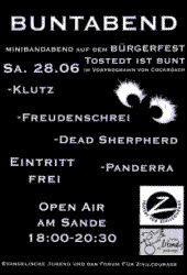 Am Abend sorgten dann die Auftritte von Klutz, Freudenschrei!, Dead Sherpherd, Pandera und Cockroach für ein fulminantes Ende.