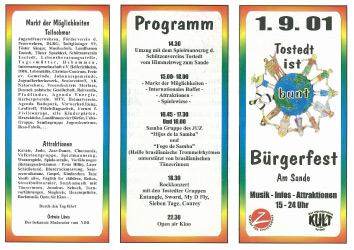 Unter dem Motto "Tostedt ist bunt" präsentierten sich Vereine, Verbände und politische Organisationen der Samtgemeinde Tostedt erstmals am 1. September 2001 auf dem Platz "Am Sande".